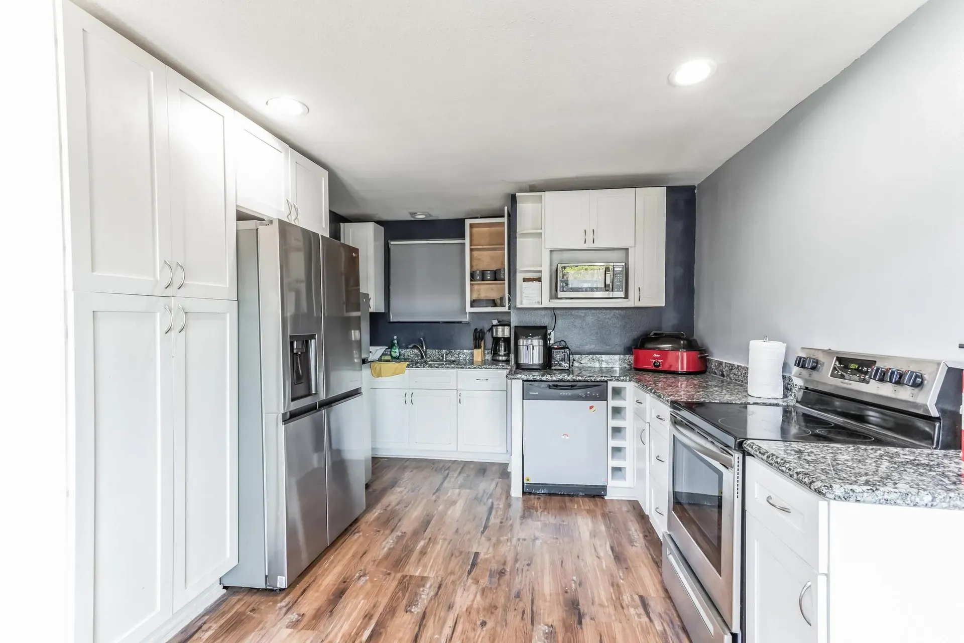 The kitchen comes equipped with a fridge, sink, oven, stovetop, as well as upgraded appliances, making it the perfect spot to whip up a meal or two.